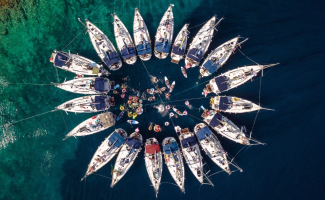 Who doesn’t love a raft-up? If you’re unfamiliar, a “raft-up” is a group of boats anchored in close proximity to one another. You tie up, relax in the water, listen to music, and enjoy the party with some food and libations. They also offer a great opportunity to hop aboard a bunch of different boats and get a feel for what you like. Just don’t forget to pack fenders—your gel coat will thank you.
