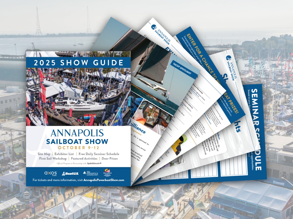 Check out the 2025 Annapolis Sailboat Show Guide for the full exhibitor list, program highlights, show map, and more!