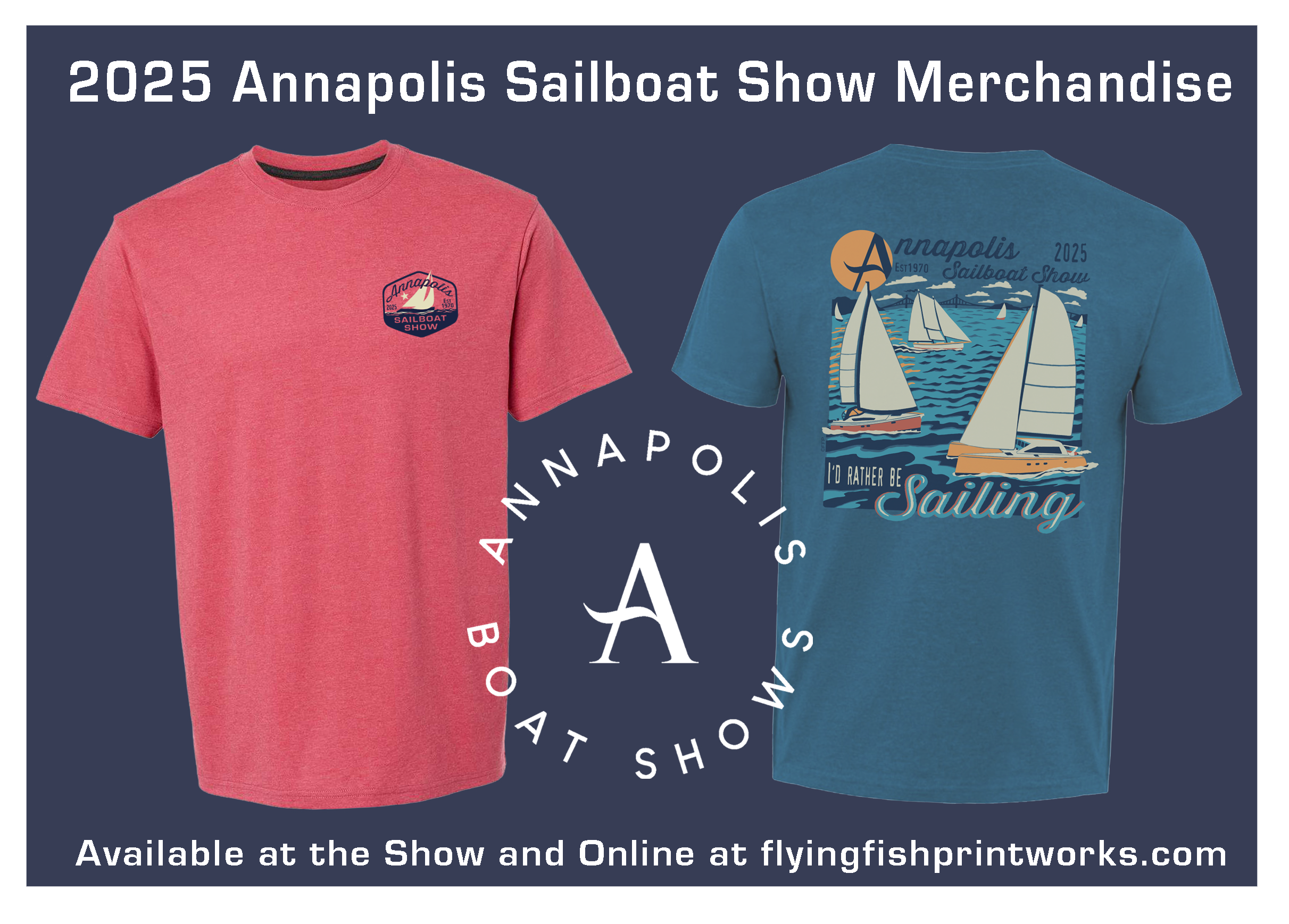 Don’t miss out on official boat show gear from Flying Fish Printworks. Signup for their newsletter to see this year’s desgins. Purchase gear at the show by visiting their displays at Tent F-1B and Tent O-1A.